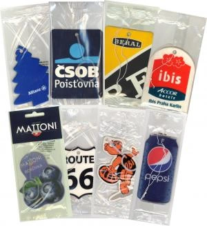 Originálne vonné dekorácie do auta s vaším logom alebo motívom, dostupné v rôznych vôňach.