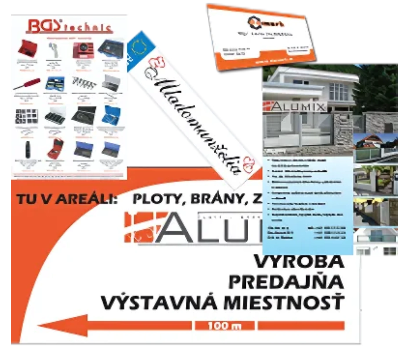 Tlačíme vizitky, letáky, plagáty, hlavičkové papiere, obálky, nálepky, bannery, katalógy,  prospekty.